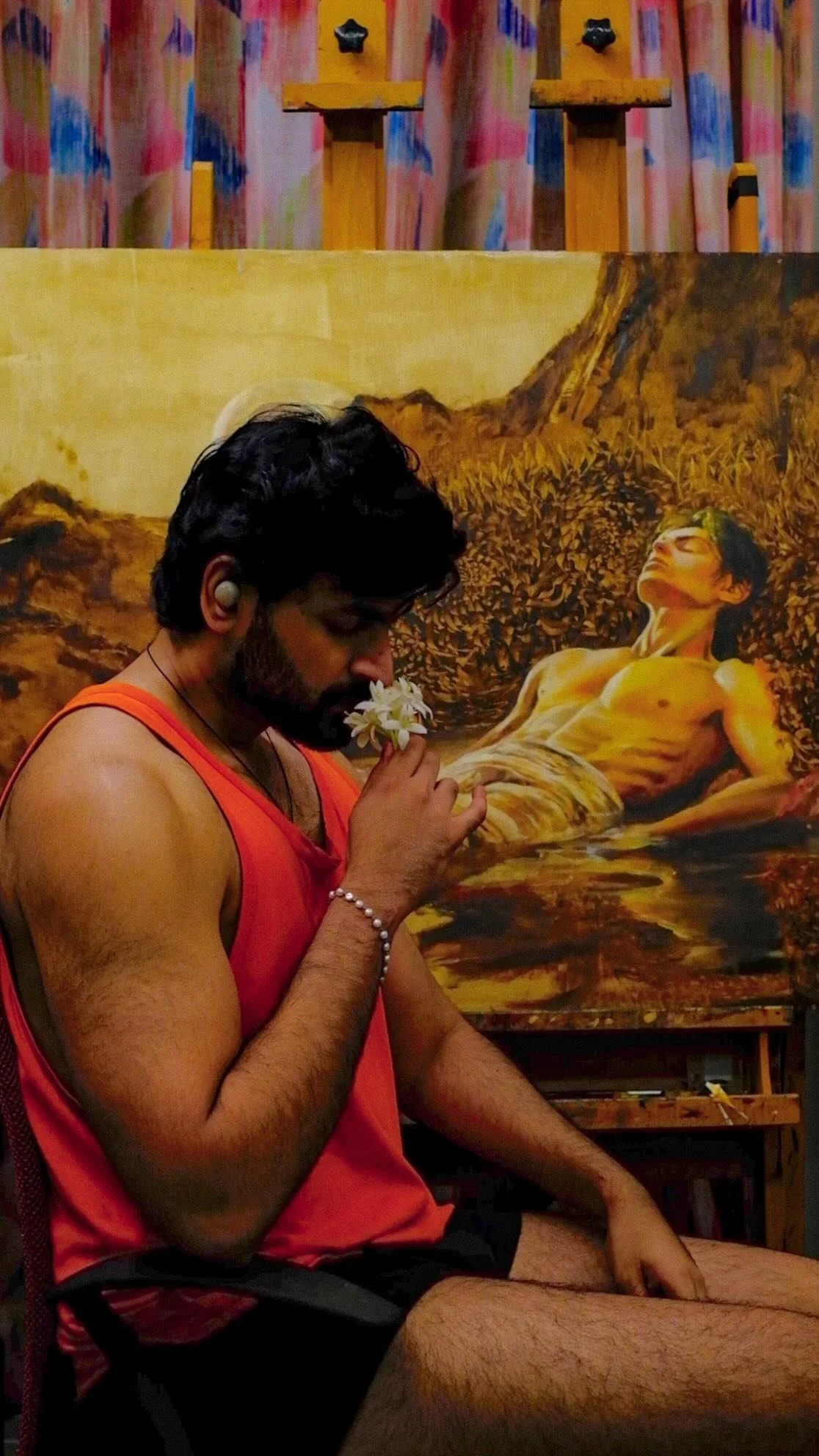 Aditya’s current project, “Tides of Transformation,” represents a profound exploration of his artistic identity. Inspired by his experiences in Paris, particularly his encounters with swans along the Seine and his discovery of Stéphane Mallarmé’s poem “Le Cygne,” this series of paintings delves into themes of creative rebirth and artistic resilience. The works feature solitary figures floating among oversized chrysanthemums, symbolizing the journey of reconnecting with one’s authentic artistic voice. This deeply personal series reflects Aditya’s own path of breaking free from creative constraints and rediscovering his true artistic freedom.